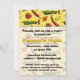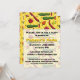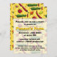 A peri-peri, friggitello, habanero, rocoto, jwala, and shishito chilli pepper are decorated with patterns from the region where they were originally cultivated or are commonly eaten and sit on a yellow background with patterns inspired by tattoos worn by native peoples in the Amazon to create a fun repeating pattern that reflects the origins and spread of these tasty, and often spicy fruits. A lighter section on the lower portion of the card has sample text that you can customise to create a personalised invite for your event.