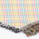 A woven blanket with a blue and yellow checkered