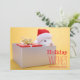 A wrapped gift and a rabbit with Santa Holiday Card