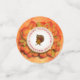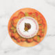 Modern wreath of autumn leaves and turkey over an orange background with texture