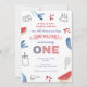 A stars and stripes first birthday invitation design suitable for a boy or girl or even twins.