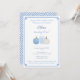 This classic Fall-themed design features a single blue and white ginger jar vase with a blue and a white watercolor pumpkin on each side and a "Greek Key" border and pattern backer. Watercolor elements were originally handpainted by me. I've set the template up for a baby shower but all of the text fields are customisable to your needs. You can change the contrast colour of the Greek Key border on the front and the pattern on the back (shown here as a pale blue) to any colour you like by entering the design tool (underneath the text customisation area, click to "customise further") then changing the background colour on each side.