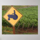 A yellow tractor crossing sign in the vineyard