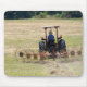 A young boy driving a tractor harvesting mouse pad