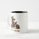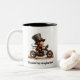 A Young Happy Child Riding a Steampunk Motorbike Two-Tone Coffee Mug