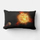 Illustration of a young red dwarf stripping the atmosphere from an orbiting planet. Violent outbursts of seething gas from young red dwarf stars may make conditions uninhabitable on fledgling planets.
