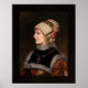 This classical art portrait features a beautiful young woman posed in side profile, that is dressed in the Renaissance attire of the 15th and 16th centuries.