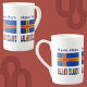 Personalised bone china mug has the Aalander or Ålander Flag with the word AALAND ISLANDS below. Above is a space for a name, in blue letters, to add a personalised look or create a special gift. The flag is blue with a red and yellow Scandinavian or Nordic Cross. Makes a lovely housewarming gift.