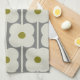 Abacus Flower and small stem pattern white & Grey Tea Towel