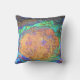 This abstract throw pillow features a bright mosaic pattern the captures the unique colouring and pattern of a polished abalone shell. The vibrant orange, teal, and purple colouring spirals around the centre of this photo featured on both the front and back of this pillow.