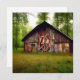 Ai art depicting an eerie abandoned barn with graffiti out in the woods.