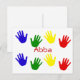 This cute little custom name hand print design is terrific for everyone young and old. It is colourful with blue green red and yellow hand prints.