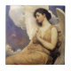 Abbott Handerson Thayer Winged Figure tile. Oil painting on canvas from 1889. Abbott Handerson Thayer was an American artist and naturalist who is best recognised today as a painter of some of American art’s finest angels. Winged Figure is one of Thayer’s most famous works featuring a brown haired angel with eyes closed and hand on heart. The angel wears a cream and yellow dress and two large white wings enfold her as she sits upon a cloud. A beautiful gift for fans of Thayer, angels, romantic art, and religious painting.