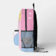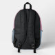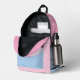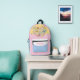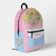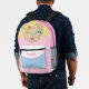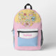 Adorable backpack for a young child features a large heart at the top which is made up of fun, whimsical drawings of things she'll find at school. There's a world globe with a cute face on it, school bus, ruler, paints, pencils, and lots of other cute items. There's even a backpack, which if you look closely, the actual backpack matches! The heart is also on the sides at the bottom and at the top is "A B C and 1 2 3". The front pocket has a template for you to add her name to personalise it. Your precious little girl is going to love this backpack and won't see another one like it!
