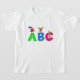 Cute cartoon illustration of happy and diverse little boys and girls climbing over giant letters of the alphabet that spell out the word ABC. Image available on various gifts and products. T-shirts. Hoodies.
