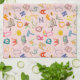 A cute alphabets pattern on a pink tea towel.