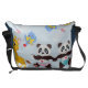 The bag is a little bit too large. It very roomy and is durable enough for a laptop and/or other electronic devices. The straps are big and can be adjusted to wear cross body. The artwork and the colors are what initially got my attention. It's even more beautiful in person.