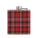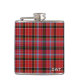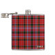 Monogrammed flask with the district tartan of Aberdeen, Scotland. Bright red, black, and sky blue Scottish plaid pattern from 1782, with green and creamy white accents.