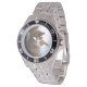 Has heft and feel of expensive stainless steel quartz watches. Good band with safety catch. I removed links, which is easy because engraved arrows show direction to push the linking pins. As always by this seller, the image (a railroad logo) is a perfect reproduction of my emailed image, and is precisely spaced and aligned.