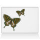 Ochre, black, white, and green dots create wave-like patterns and accentuate the spots in this swallowtail butterfly, inspired by the traditional dot art of Australia's Aboriginal population.