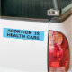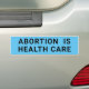 Show support for pro-choice reproductive rights with a political protest bumper sticker featuring "ABORTION IS HEALTH CARE" in bold black text on a bright blue background. Let the government know you oppose abortion bans.