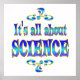 A shiny blue design saying - It's all about SCIENCE - to help promote science. Great for a science teacher.
