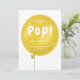 Fun pregnancy announcement card featuring a large yellow balloon that reads Pop!