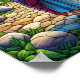 This stained-glass-style masterpiece brings to life the moment from Genesis 15 when Abram gazes skyward with faith and devotion. He stands before a stone altar, dressed in vibrant robes of red, orange, and white, reflecting his steadfast belief in God’s promise. The tranquil setting includes lush green grass, distant rolling hills, and a radiant blue sky, creating a serene backdrop that enhances the sacred atmosphere. The altar, intricately detailed, represents Abram’s dedication, while the circular frame and black background add a timeless, reverent touch. This artwork beautifully honours this significant biblical event.