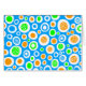 An attractive hand drawn abstract design made up of circular shapes in white, orange, green and blue.