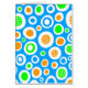 An attractive hand drawn abstract design made up of circular shapes in white, orange, green and blue.