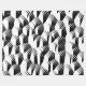 A high contrast abstract design made up of irregular black shapes with half-tone like spots.