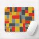 An original abstract design made up of irregular rectangles and squares in red, amber, orange and greys.