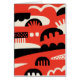 A bold original hand drawn abstract design in black, orange red, and cream.