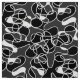 A seamless pattern made of overlapping and layered semi-opaque irregular shapes outlined with opaque lines.