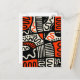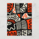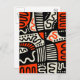 A bold original hand drawn abstract design in black, orange red, and cream.