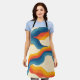 Abstract 70s Retro Orange Blue Wavy Stripe Pattern Apron