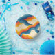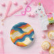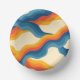 Abstract 70s Retro Orange Blue Wavy Stripe Pattern Paper Plate