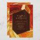 You get both glamour and high impact with this coordinating wedding set that features abstract agate patterns, textured with faux-crystals and highlights in glittering faux gold foil. Striking colour combinations, like this collection with it's bold, warm palette from hot orange to golden yellow create the background for the pieces in this coordinated collection. This elegant wedding invitation features all the above with a hexagon, semi-transparent label in chocolate brown to hold your text. A template is provided to easily add your event details. View the collection link on this page to see all of the matching items in this beautiful design or search ID827 to see additional colour choices for this design.