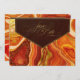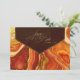 You get both glamour and high impact with this coordinating wedding set that features abstract agate patterns, textured with faux-crystals and highlights in glittering faux gold foil. Striking color combinations, like this collection with it's bold palette from hot orange to golden yellow, create the background for the pieces in this coordinated collection. This wedding Save the Date card features all the above plus elegant calligraphy on an angled, semi-transparent chocolate brown label to hold your menu selections. A template is provided to easily add your menu details, initials and wedding date. View the collection link on this page to see all of the matching items in this beautiful design or search ID827 to see additional color choices for this design.