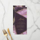 You get both glamour and high impact with this coordinating wedding set that features abstract agate patterns, textured with faux-crystals and highlights in glittering faux gold foil. Striking colour combinations, like this suite with it's luxe palette from muted grape and mauve to soft orchid pink, create the background for the pieces in this coordinated collection. This second version of our wedding reception menu features all the above plus elegant calligraphy on an angled, semi-transparent label to hold your menu selections. A template is provided to easily add your menu details, initials and wedding date. View the collection link on this page to see all of the matching items in this beautiful design or search ID827 to see additional colour choices for this design.