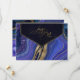 You get both glamor and high impact with this coordinating wedding set that features abstract agate patterns, textured with faux-crystals and highlights in glittering faux gold foil. Striking color combinations, like this suite with it's night-sky palette from deep midnight blue to soft violet, create the background for the pieces in this coordinated collection. This wedding Save the Date card features all the above plus elegant calligraphy on an angled, semi-transparent label to hold your menu selections. A template is provided to easily add your menu details, initials and wedding date. View the collection link on this page to see all of the matching items in this beautiful design or search ID827 to see additional color choices for this design.
