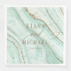 You get both glamour and high impact with this coordinating wedding set that features abstract agate patterns, textured with faux-crystals and highlights in glittering faux gold foil. Striking colour combinations, like this suite with it's soft pastel palette from mint green to teal blue, create the background for the pieces in this coordinated set. This wedding paper napkin features all the above plus elegant calligraphy and a template to easily add your names and wedding date. View the collection link on this page to see all of the matching items in this beautiful design or search ID827 to see additional colour choices.