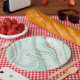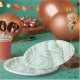 You get both glamour and high impact with this coordinating wedding set that features abstract agate patterns, textured with faux-crystals and highlights in glittering faux gold foil. Striking colour combinations, like this suite with it's soft pastel palette from mint green to teal blue, create the background for the pieces in this coordinated set. This wedding paper plate features all the above plus elegant calligraphy and a template to easily add your names and wedding date. View the collection link on this page to see all of the matching items in this beautiful design or search ID827 to see additional colour choices.