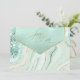 You get both glamor and high impact with this coordinating wedding set that features abstract agate patterns, textured with faux-crystals and highlights in glittering faux gold foil. Striking color combinations, like this suite with it's soft pastel palette from mint green to teal blue, create the background for the pieces in this coordinated collection. This wedding Save the Date card features all the above plus elegant calligraphy on an angled, semi-transparent label to hold your menu selections. A template is provided to easily add your menu details, initials and wedding date. View the collection link on this page to see all of the matching items in this beautiful design or search ID827 to see additional color choices for this design.