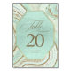 You get both glamour and high impact with this coordinating wedding set that features abstract agate patterns, textured with faux-crystals and highlights in glittering faux gold foil. Striking colour combinations, like this suite with it's soft pastel palette from mint green to teal blue, create the background for the pieces in this coordinated collection. This wedding Table Number card features all the above plus elegant calligraphy on an octagonal, mint green label to hold your text. A template is provided to easily add table number, names and wedding date. View the collection link on this page to see all of the matching items in this beautiful design or search ID827 to see additional colour choices for this design.