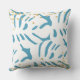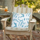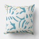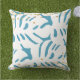 Abstract Aqua Blue and White Leaves with Faux Gold Cushion