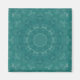 Abstract painting of light aqua swirls on a dark aqua background, modified in to a kaleidoscope design, printed on magnets.
