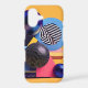This modern abstract artwork is a striking exploration of form, contrast, and playful balance. Sculptural geometric shapes stack and intersect in a carefully composed arrangement, blending spheres, circles, rectangles, and blocks into a visually confident design. Bold colors—golden yellow, deep blue, vibrant purple, coral pink, and black—create strong contrast, while patterned surfaces add texture and rhythm to the composition.