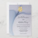 This unique modern Chinese American wedding invitation features a dusty blue abstract art painting, an artistic gold double happiness symbol and bride and groom names in an elegant handwritten script.