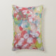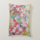 Abstract "floral-like" pillow, a mixed-media work of art, hand-painted with reds, light green, blue, white and peach, making it a most-desirable attraction for your home.